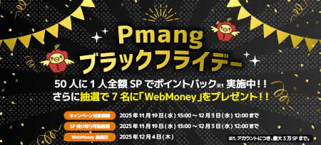 | キャンペーン | Pmangブラックフライデーキャンペーンスタート! | 2025/11/19 | 91 |