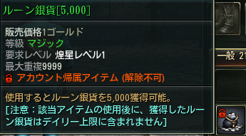 追加貨幣:ルーン銀貨。ルーン銀貨はアカウント通用貨幣です。