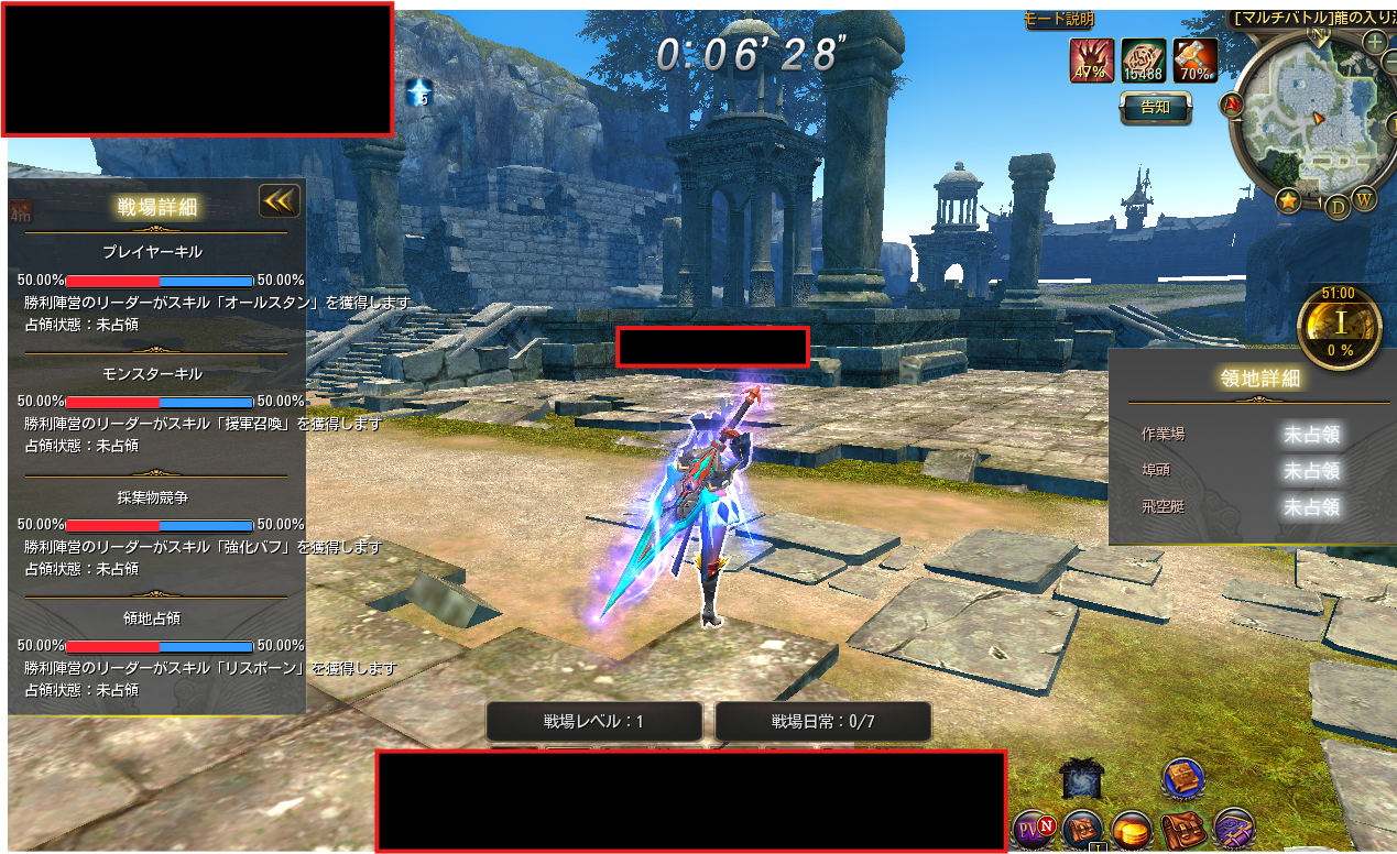 マルチバトルが開始すると、各陣営に分かれて領地の占領やスキルの獲得の為に戦闘を行います。